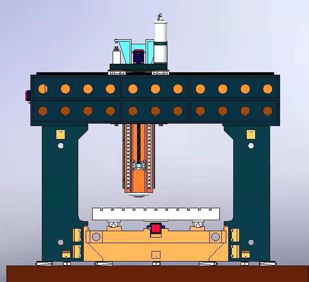 2.采用龍門式跨式結(jié)構(gòu),橫梁采用梯形式結(jié)構(gòu),整機結(jié)構(gòu)通過三維變徑優(yōu)化處理,減輕了機床強力切削產(chǎn)生的震動、提高了整機的剛性。
